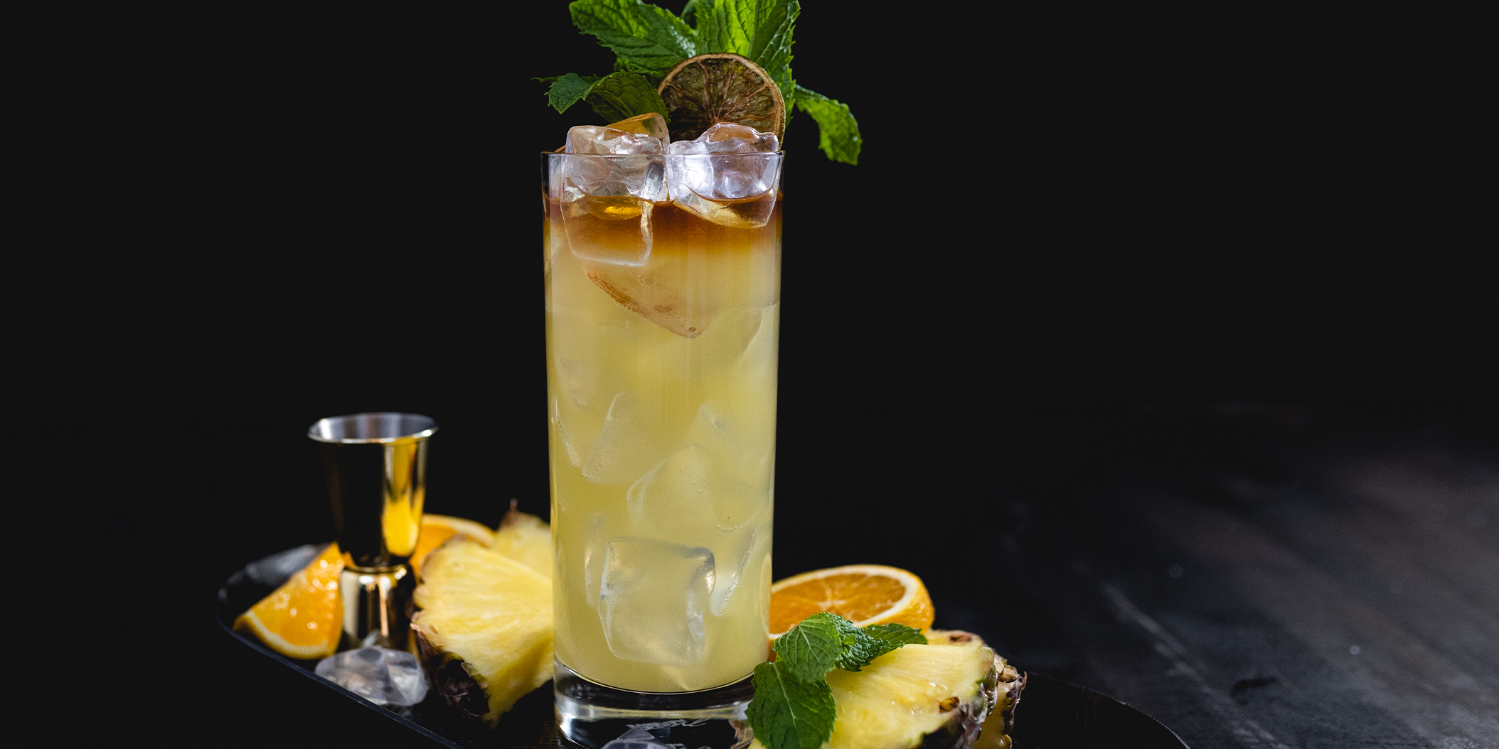 Bring to simmer then stir in rice. Orange juice pineapple juice monin almond syrup Add ice rum and soda. Pour into a highball glass.